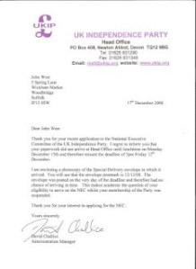 A measure of the corruption of EUkip is this dishonest letter probably authored by Farage who seized leadership in an utterly corrupt leadership election since when he has run EUkip into the ground as his private feifdom, breaking promise after promise and acting in direct and flagrant abuse of the intent of the Constitution as he placed his puppets and nodding donkeys in control of all relevant offices – he then presided over an utterly corrupt selection and election process for MEP candidates.