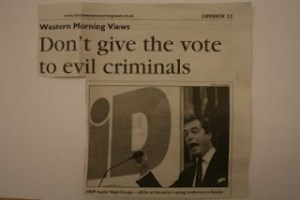 Despite these facts it is interesting to note that in direct contravention of basic democracy and grass roots wishes we note that Nigel Farage oversaw a reversal of the democratic process and against all the evidence and the wishes of his own electorate and elected committee reinstated Gawain Towler as candidate to represent the peoples of The South West Region as an MEP!!