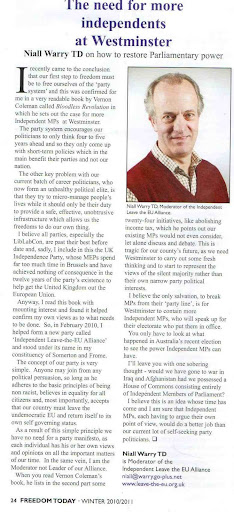 Well they are off to a relatively good start in broadening its horizons as the latest version of the magazine that is just out has the following article in it by Niall Warry, formerly Chairman of UKIP Wales and then UKIP Cheltenham Chairman but unable to see UKIP Cleaned-Up and chose to disassociate himself not wanting to have his name befouled by association with corruption – CLICK HERE