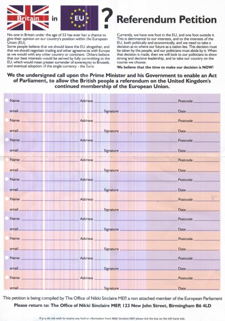Nikki Sinclaire is a Ukip MEP for the West Midlands who heads the Campaign for a Referendum.