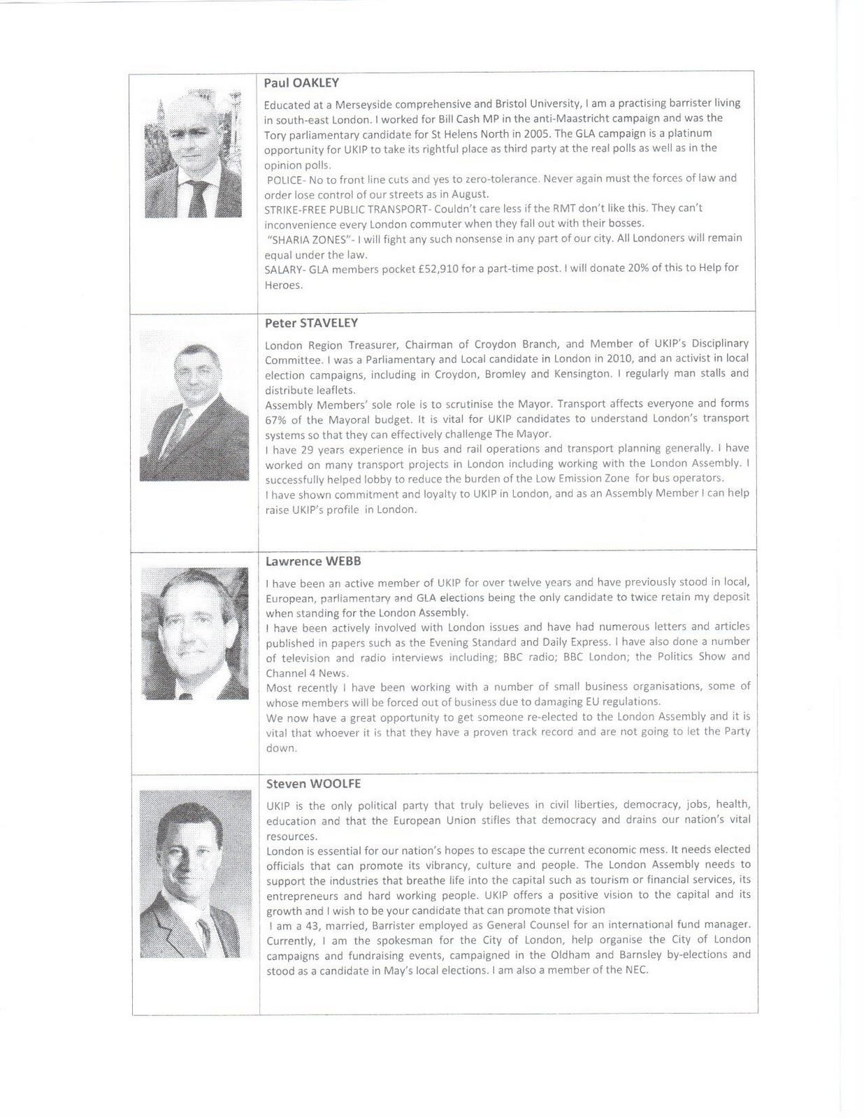 Unfortunately, largely due to the machinations of Farage and the self serving interests of his anointed claque, UKIP has NEVER attracted anyone of ethical and moral standing with political gravitas and ability who has been allowed to rise in the ranks.