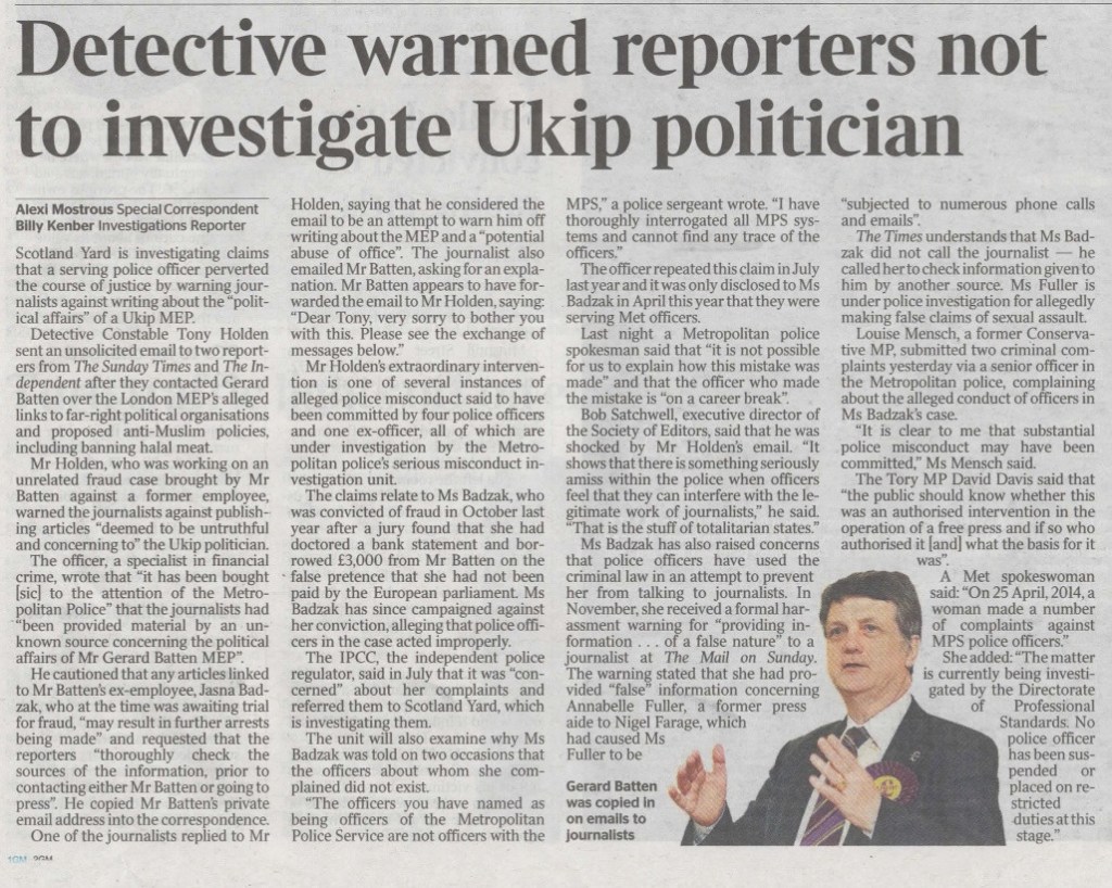 Ukip’s Only Hope May Be To Sack Gerard Batten » TIMES – Police Corruption 06-Dec-2014 01