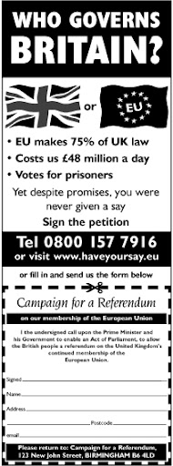 for latest advertisment for the cross-party Campaign for a Referendum.