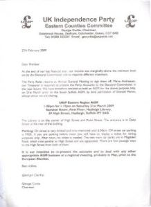 Not only is George Curtis an unelected member of The Eastern Region Committee but under EUkip’s own rules the committee itself is invalid never having been supported or created by a vote – may I suggest that you view the comments at The Ugley fob off meeting CLICK HERE.