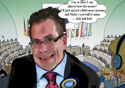 having had the story exposing huge areas of corruption in The EU, some never covered before by an MEP according to Guy Basnett of The News of The World bumped out of the paper by an attempt at a spoiler to attack Nikki Sinclaire based largely on a set-up and stolen material, removed dishonestly and unlawfully from her office by a salaried member of her staff who has shown they are duplicitous, dishonest and untrustworthy in such a betrayal of trust and abuse of privilege – the spoiler story, which was unsubstantiable and had the finger prints of the self serving Nigel Farage all over it, as he seeks to keep his place at the troughs on the gravy train and hopes to ever further engorge himself.