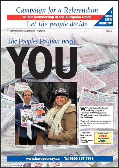 May I congratulate Mike Nattrass, trevor Colman, Kate Hoey, Austin Mitchell, Richard Sheppard, Phillip Hollobone, David Bannerman and many other cross party members for their efforts and support of this campaign for a referendum which belatedly Dan Hannan and other friends of the EU such as Bob crow and his ilk plus many feeding at the troughs have decided to copy to try to help the EU and their income stream by trying to sabotage the campaign just as they tried with The Peoples’ Pledge.