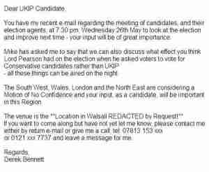 Even at the Walsall meeting Mike Nattrass announced he was too weak to lead and it was upto the branches – it seems all the spunk had trickled out of him yet again when Farage’s letter was read out stating Lord Pearson had his full support.